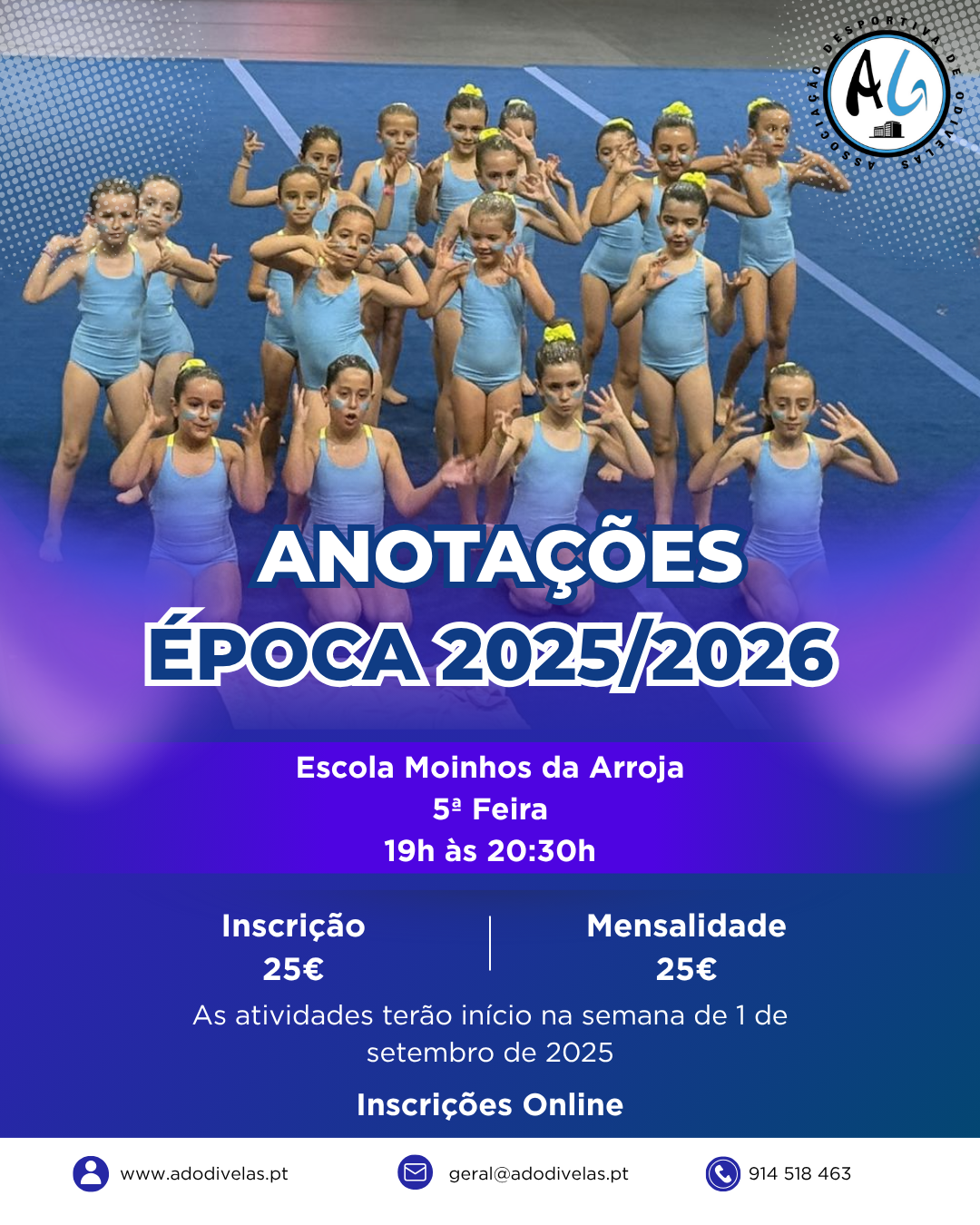 • 5ªf – das 19h às 20h30, Ginásio do Pavilhão Moinhos da Arroja.